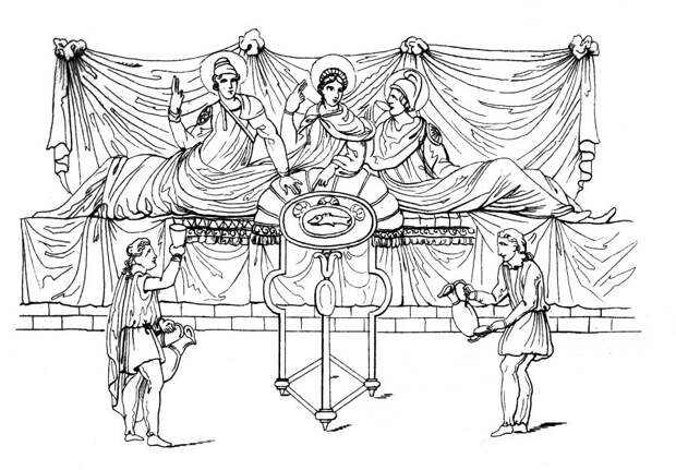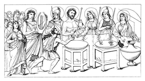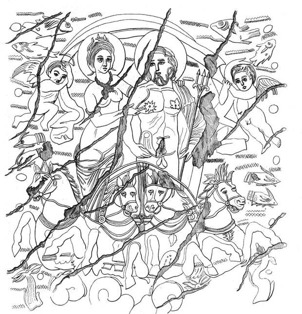 Рис. p1.10. “Античные” Посейдон и Амфитрита с христианскими нимбами на помпейской стенной картине. Якобы I век н.э. Взято из [817:2], с.190, лист II.