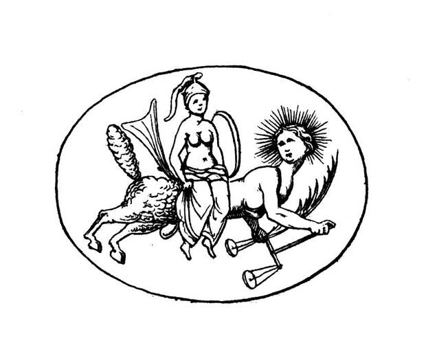 Рис. p1.17. “Античная” Пантея с христианским нимбом на резном камне. Якобы II-III века н.э. Взято из [817:2], с.190, лист III.