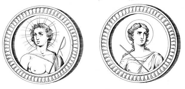 Рис. p1.9. “Античные” Гелиос и Селена с христианскими нимбами на помпейской стенной картине. Якобы I век н.э. Взято из [817:2], с.189, лист II.