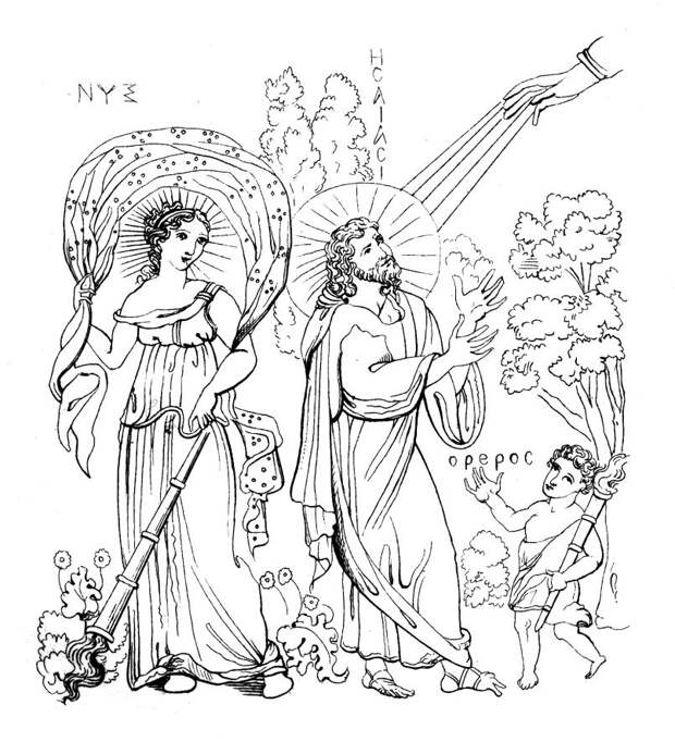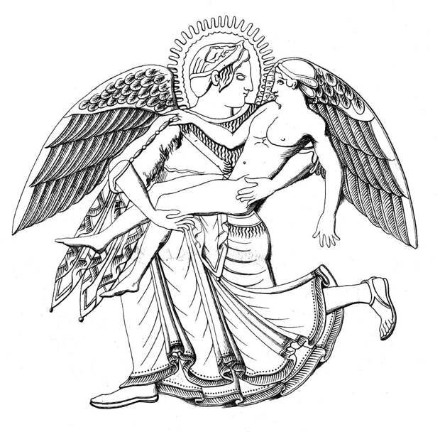 Рис. p1.3. “Античные” Гелиос с христианским нимбом и Эос на вазе с красными фигурами. Якобы II век до н.э. Взято из [817:2], с.189, лист I.