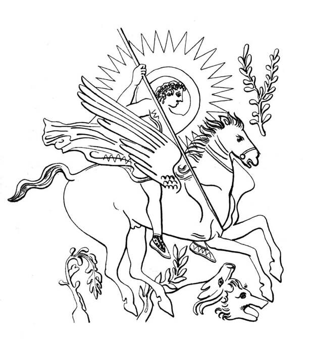 Рис. p1.6. “Античный” Беллерофонт с христианским нимбом на вазе с красными фигурами. Якобы II век до н.э. Взято из [817:2], с.189, лист I.