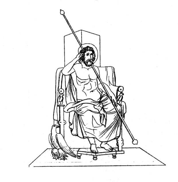 Рис. p1.7. “Античный” Зевс с христианским нимбом на помпейской стенной картине. Якобы I век н.э. Взято из [817:2], с.189, лист II.
