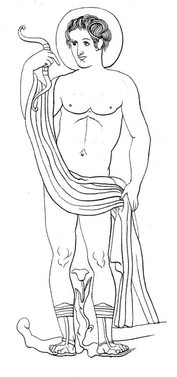 Рис. p1.16. “Античный” Аполлон с христианским нимбом на этрусском зеркале. Якобы I-II века н.э. Взято из [817:2], с.190, лист III.