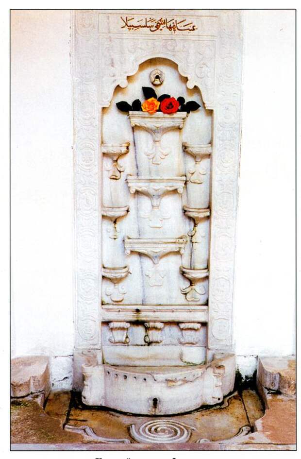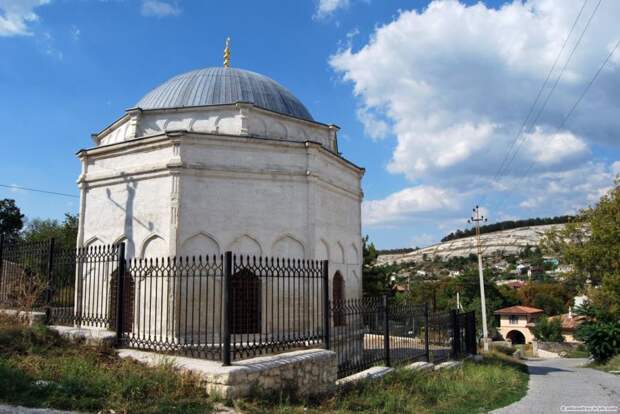 Построенное в XVIII в., оно близко традициям османской культуры XV-XVI вв., однако без новшеств... Это восьмигранник, увенчанный куполом на восьмигранной же основе... Дюрбе было возведено над прахом жены Крым-Гирея; по преданию, именно здесь был установлен и "Фонтан слез", позднее перенесенный в Фонтанный дворик дворца>> [862:1], с.108-109.