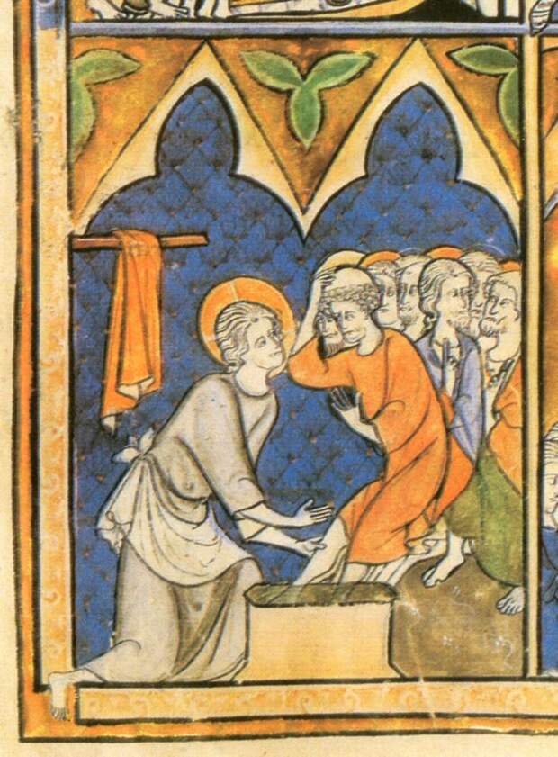 В связи со сказанным стоит теперь обратиться к Евангелиям и посмотреть - где в них появляются слова "слезы". Выясняется, что единственное место, где напрямую говорится о женских слезах, это Евангелие от Луки, 7:38 и 7:44. См. [670], с.1005. Лука рассказывает известную историю о грешнице, обильно облившей слезами ноги Христа, рис.4.107. Евангелия не называют имя этой грешницы, однако старинная традиция считает, что тут речь идет о МАРИИ Магдалине. Вот рассказ Луки: "Женщина того города, которая была грешница, узнав, что Он возлежит в доме фарисея, принесла алавастровый сосуд с миром и, став позади у ног Его И ПЛАЧА, НАЧАЛА ОБЛИВАТЬ НОГИ ЕГО СЛЕЗАМИ и отирать волосами головы своей, и целовала ноги Его, и мазала миром... И, обратившись к женщине, сказал (Христос - Авт.) Симону: видишь ли ты эту женщину? Я пришел в дом твой, и ты воды Мне на ноги не дал, а ОНА СЛЕЗАМИ ОБЛИЛА МНЕ НОГИ И ВОЛОСАМИ ГОЛОВЫ СВОЕЙ ОТЕРЛА" (Лука 7:37-38, 7:44).