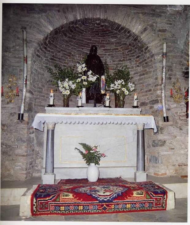 <<ДОМ СВ. МАРИИ БОГОМАТЕРИ. Как видно и из рисунка (рис.4.111 - Авт.), здесь проводятся религиозные церемонии смирения и почтения. Папа Бенуа сказал: "Святой Джон прибыл в Эфес со Св. Марией. Эта счастливая и святая Мать здесь вознеслась на небеса. На рисунке (рис.4.112 - Авт.) изображен дом Св. Марии после реставрации. Катерине Эммерих (1774-1824) за два года до смерти явилось видение в связи с этим домом. Дом был обнаружен в 1892 году. Священник Поулен Жунг, проведший здесь раскопки, обнаружил его. Предполагается также, что дом этот ранее был церковью, построенной в честь Св. Марии в 9 столетии. Дом имеет квадратную форму и построен из камня. В дом можно войти через небольшую дверцу и попасть в маленькую комнатку (рис.4.113 - Авт.). В 1903 году Папа Леон 7-ой, Папа Петер 10-ый, Папа Леон 8-ой, а также и другие деятели духовенства объявили о прибытии и жизни Св. Марии в Эфесе. В 1904 году это место - Паная Капулу было названо святым и стало местом паломничества>> [252:2].