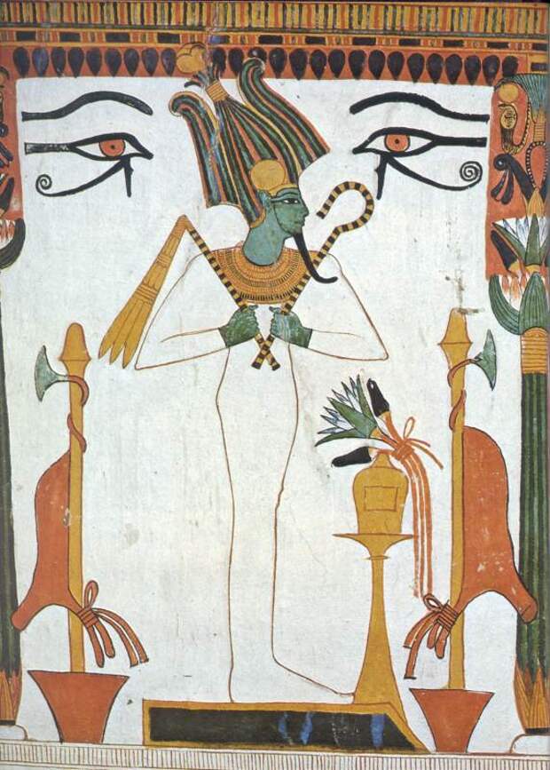 Более того, такое описание Хониата могло быть отнюдь не следствием какой-то случайной ошибки. Его текст вполне соответствует символическому изображению распятых разбойников на "древне"-египетских картинах. См., например, рис.2.87, рис.2.87a. Здесь показан воскресший из мертвых Осирис. По бокам от него - два столба. К каждому из них привязано обезглавленное животное. Египетский Осирис - это Христос, см. ниже. То, что "животные" обезглавлены, означает, что их казнили. В целом символика египетской картины в точности отвечает христианскому распятию. Христос был распят посреди двух разбойников и воскрес, а оба разбойника умерли. Данные "древне"-египетские изображения хорошо соответствуют тексту Хониата.