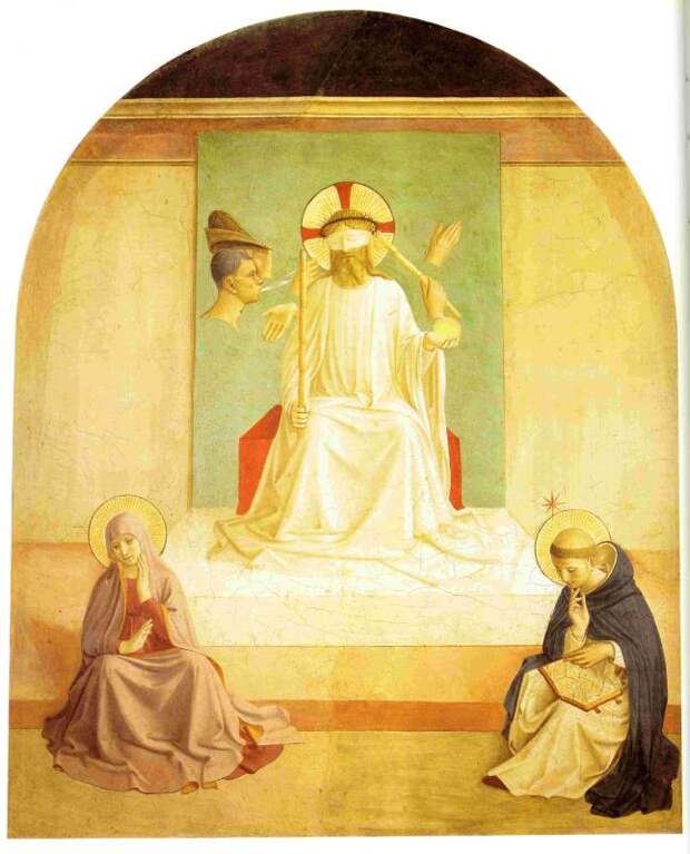 На рис.2.81 приведено еще одно интересное старинное изображение Страстей Христа. Вокруг Христа показаны различные сюжеты: поцелуй Иуды; меч Петра, отрубающий ухо воину; копье, которым пронзили Христа; палку с губкой и т.д. Любопытно, что здесь изображено девять отрубленных рук. Показаны, например, руки Пилата, когда тот обмывал их. См. также рис.2.81a. Аналогично, на картине Фра Анджелико "Осмеяние Христа" мы тоже видим отрубленные руки, окружающие Христа, см. рис.2.82.
