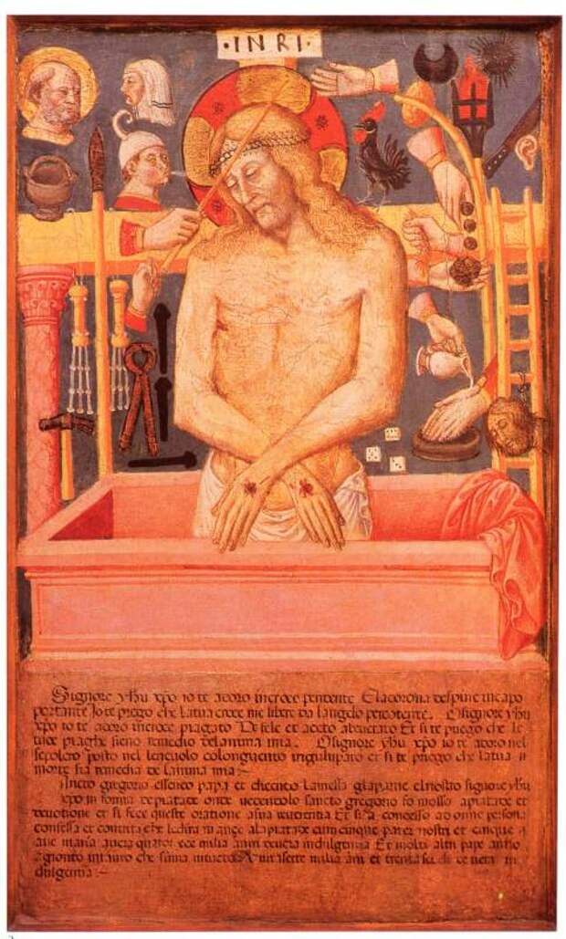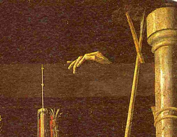Здесь мы сталкиваемся, по-видимому, с некоей символикой. Но не исключено, что художник еще смутно помнил, что в Страстях Христа в какой-то форме фигурировала отрубленная рука Христа. Суть дела была уже забыта, но традиция рисовать "отрубленные руки" еще жила. Стоит отметить, что подобная символика "отрубленных рук, окружающих героя", почему-то связывалась именно с Христом. Нам неизвестны другие исторические персонажи, при изображении которых средневековые художники считали бы нужным окружать их "отрубленными руками" как бы плавающими в воздухе. А вот когда представляли Страсти Христа, то, как мы видели, иногда такую символику рисовали.