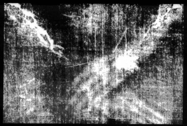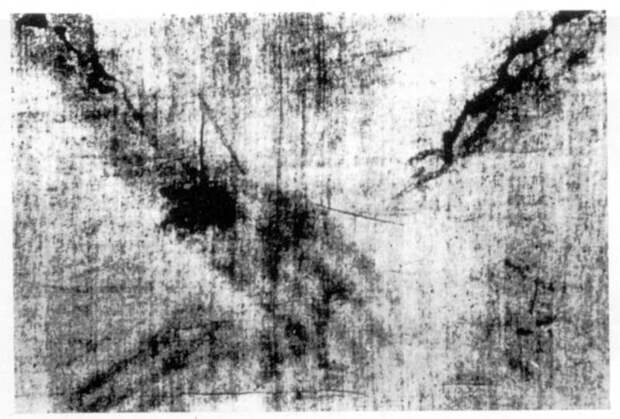 Обратимся теперь к Плащанице. Если действительно у Христа была отрублена рука, то следы этого должны быть видны на Плащанице. Фотография участка Плащаницы с изображением кистей рук приведена на рис.2.77. Здесь имеет смысл пояснить, что изображение тела на Плащанице дано в зеркальном отражении - поскольку отпечаток на ткани, подобно отражению в зеркале, меняет местами право и лево. Позитивное изображение рук на Плащанице с естественным расположением правого и левого дано на рис.2.78. Левая рука лежит сверху и на ее запястье видна огромная рана. Считается, что это - рана от гвоздя [244], с.15. А на правой руке Христа мы действительно видим разрыв между кистью и самой рукой. Конечно, трудно утверждать с полной определенностью, но судя по изображению на Плащанице с правой рукой было что-то не в порядке. Возможно, кисть была отрублена и затем приложена к мертвому телу. Чтобы отрубленная кисть держалась, ее накрыли левой рукой.