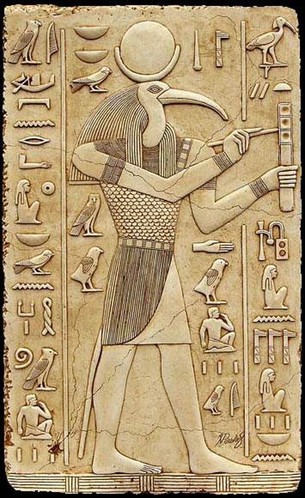 В приведенном списке качеств, приписываемых Тоту, присутствуют моменты, сближающие его с Христом. Так например, прозвище ТРИЖДЫ ВЕЛИКИЙ перекликается с христианской Троицей, в которую входит Христос. Утверждение о том, что Тот считался языком Птаха, можно понять как то, что Святой Дух говорил через Христа. Это весьма напоминает христианскую догматику. Тем более, что Птах был членом египетской Троицы, так же как и Святой Дух входит в христианскую Троицу. Само имя египетского бога ПТАХ, происходит, вероятно, от славянского слова ПТАХА, ПТИЦА и сближает этого "древнейшего" бога с христианским Святым Духом, который часто изображается в виде птицы, например, голубя, см. рис.8.6, рис.8.7, рис.8.8. "Древне"-египетский бог Птах или Пта тоже изображался в виде птицы, см. рис.8.9.