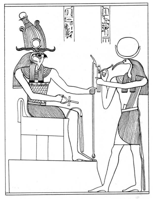 Далее известно, что некоторые части "Начал" Евклида были написаны ТЕЭТЕТОМ (книги 7, 10 и частично 12, согласно [85]). Британская Энциклопедия, например, сообщает, что Теэтет (Theaetetus) написал десятую книгу "Начал" Евклида [1118:1]. Имя ТЕЭТЕТ или ТЕО-ТЕТ, ТЕО-ТОТ, скорее всего, означало БОГ ТОТ = ТЕОС-ТОТ. Но тогда на память сразу же приходит египетский бог Тот, который постоянно пишет что-то на папирусе. В сонме египетских богов он - самый мудрый и ученый бог, см. рис.8.5, рис.8.5a. <<Тот, Джехути, в египетской мифологии бог мудрости счета и письма. Женой Тота считалась богиня истины и порядка Маат... ТОТУ ПРИПИСЫВАЛОСЬ СОЗДАНИЕ ВСЕЙ ИНТЕЛЛЕКТУАЛЬНОЙ ЖИЗНИ ЕГИПТА... Он разделил время на месяцы и годы, его называли "владыкой времени"... Тот создал письменность и научил людей счету и письму... Под покровительством Тота находились все архивы и знаменитая библиотека Гермополя. Тот "управлял всеми языками" и сам считался языком бога Птаха... Тоту приписывалось создание священных книг... В культе мертвых и погребальном ритуале Тоту принадлежала ведущая роль... Тот присутствовал на суде Осириса... В религиозно-мистической литературе древних греков Тот выступал под именем Трисмегиста ("Трижды очень великого")>> [533], т.2, с.521-522.