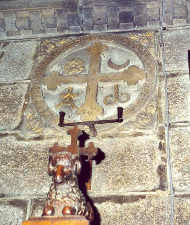. И опять-таки, на всех подобных крестах полумесяц со звездой поставлен даже ВЫШЕ, чем буквы Альфа и Омега. Так что никак нельзя сказать, что полумесяц со звездой - "знак побежденного врага". Напротив, совершенно очевидно, что средневековые мастера, высекавшие на стенах собора Сантьяго де Компостела многочисленные османские полумесяцы со звездами, поклонялись им как христианским символам.