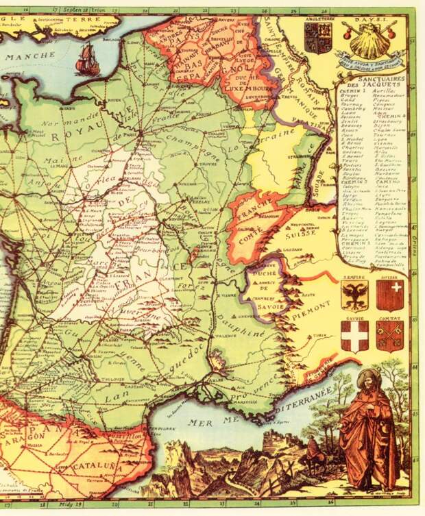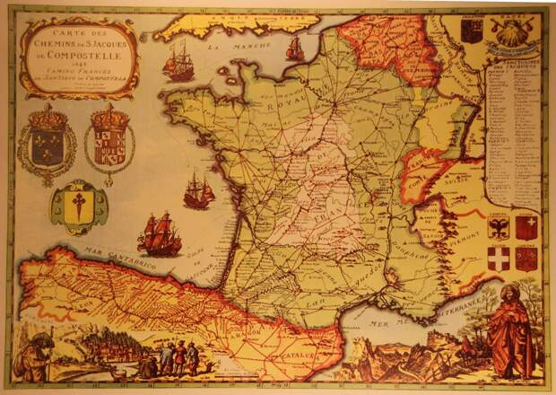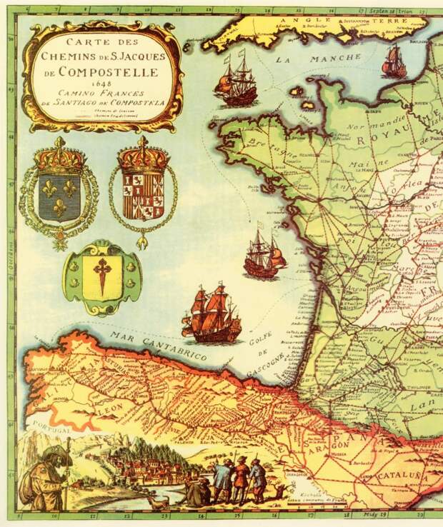 Одного взгляда на карту 1648 года достаточно, чтобы понять, что сложная сеть маршрутов изначально имела другое значение. Причем заведомо очень важное. Иначе ей не придавали бы исключительный статус даже сегодня, по прошествии сотен лет. Сложная сеть накинута на всю Западную Европу и вовсе не направлена исключительно в Западную Испанию. Похоже, что карту рисовали не для паломников, а для других целей. Для каких? Что отражено на карте?