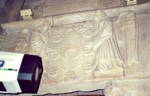 приведен другой барельеф из собора Сантьяго де Компостела, где османский полумесяц на щите-гербе изображен абсолютно недвусмысленно. Вверху - христианский крест и ракушки. Справа и слева герб поддерживают ангелы. То есть османский полумесяц представлен здесь, - как, впрочем, и на всех других изображениях собора Сантьяго де Компостела, - как объект поклонения и глубочайшего уважения. А отнюдь не как вражеский символ, как в том стараются убедить нас сегодня. Мол, христианские храмы сверху донизу украшали полумесяцами со звездами в знак победы над врагами-османами.