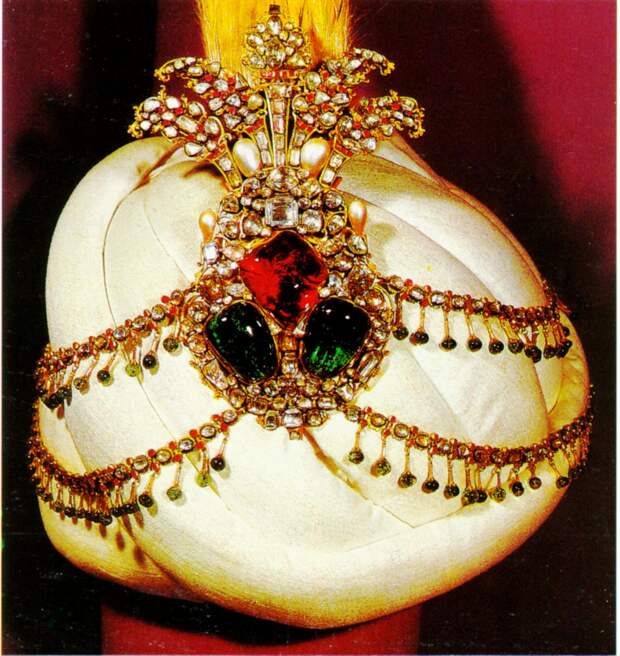 Это - косвенное подтверждение обнаруженного нами соответствия между Иисусом Навином и Александром Македонским. Между прочим, сегодня можно посмотреть - как все это выглядело. Дело в том, что османские=атаманские султаны действительно носили на тюрбане, на лбу, огромную драгоценную булавку с крупным драгоценным камнем в оправе. Иногда в центре помещали несколько больших камней. Булавка втыкалась в ткань, рис.5.69