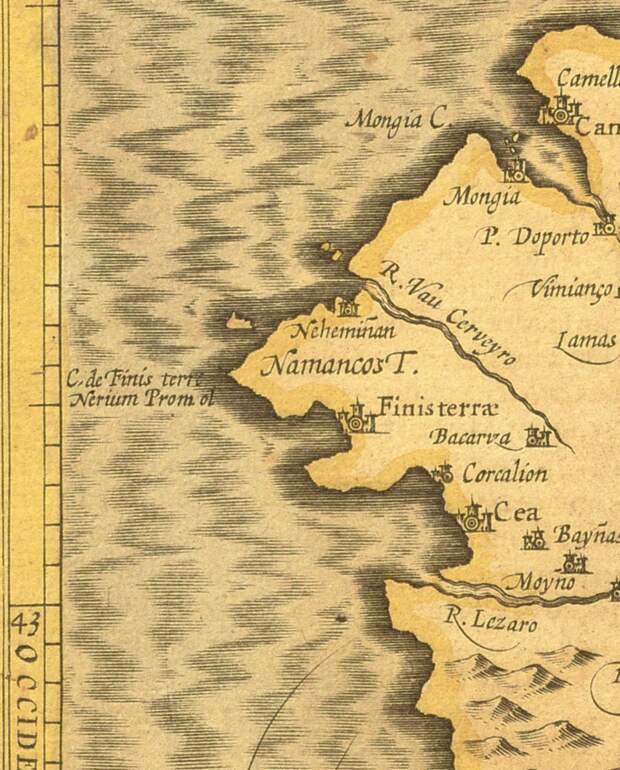 . Название "Конец Земли" сохранилось тут до сегодняшнего дня. Кроме этого "Конца Земли", существует еще несколько мест с тем же названием. Например, во Франции. Однако отличие "испанского Конца Земли" от других в том, что этот "конец" точно отвечает современному пониманию запад-восток, то есть расположению северного полюса, откуда исходят меридианы. Люди, поставившие на карте Испании самый западный "Конец Земли", уже хорошо понимали - где находится северный полюс, и что такое меридианы. "Испанский Конец Земли" расположен западнее всех других "концов".