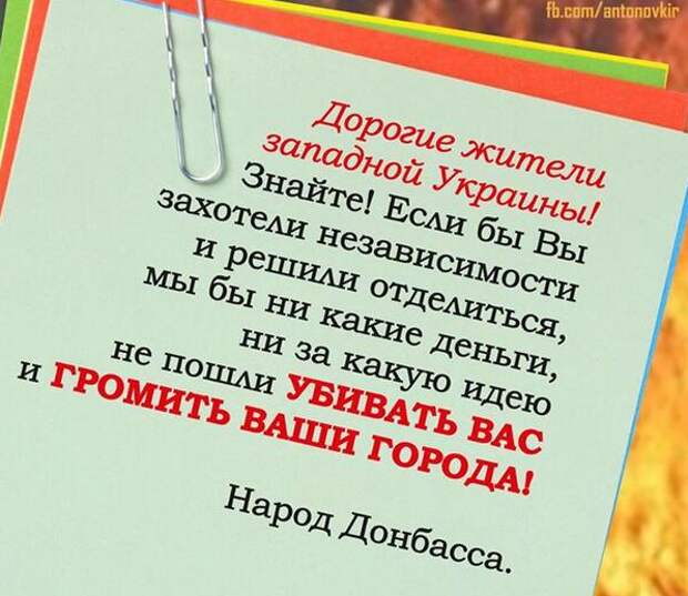 Со всех сторон на чёрное говорят "белое". Ложь льётся непрерывным потоком в формате 24/7. Нет ни одного источника, доступного населению, который давал бы правдивую информацию.Вы скажете - ! Увы, до начала событий лишь малая часть населения Украины интересовалась политическими вопросами - остальные туда лазили початиться, повисеть в контактике, фоточки повыкладывать, на порнушку подрочить, фильмы качнуть... Всё, что они слышали о политике (фу, какая гадость!) - было из телеящика. И когда всё началось, те же политические вопросы они по-прежнему всасывали из ТВ. Мало кому из них в голову пришло искать новые и правдивые источники. Ведь когда со всех каналов круглосуточно несется одно и то же, именно оно и принимается за правду. Центральной, Северной, Западной Украины события на Юго-Востоке лично никак не коснулись - для них это только новости из ящика. И только Юго-Восток, сожжённый и расстрелянный, кожей ощущает, где враг, а где - друг, где - ложь, а где - правда.