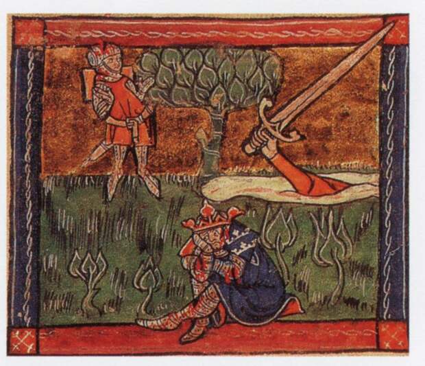 - Оставь слезы и стенания, любезный рыцарь, - сказал ему король... Возьми добрый меч мой Экскалибур и ступай с ним на берег, а когда придешь туда, велю тебе, брось меч в воду и возвратись ко мне рассказать, что ты там увидишь.